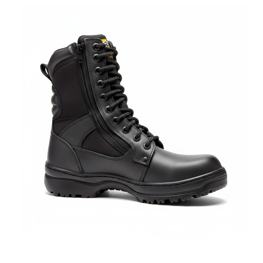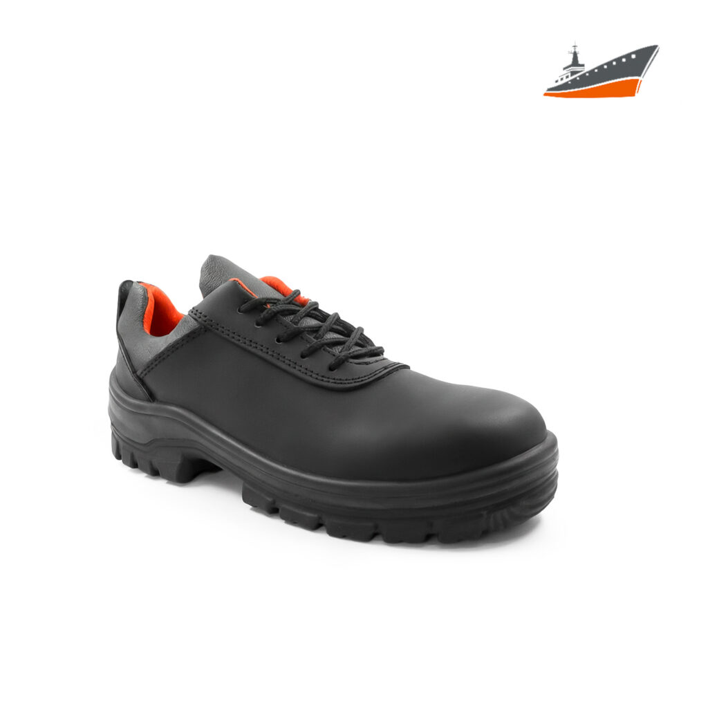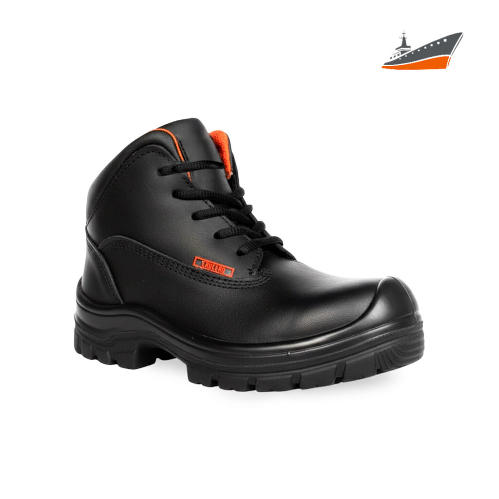 Corte:piel color negro atiderrapante atisovente con frenado adelante y atras, con casquillo de policarbonato y puntera al frente Dieletrica, forro antihongos y atitranspirante. Talla:22 a la 30.