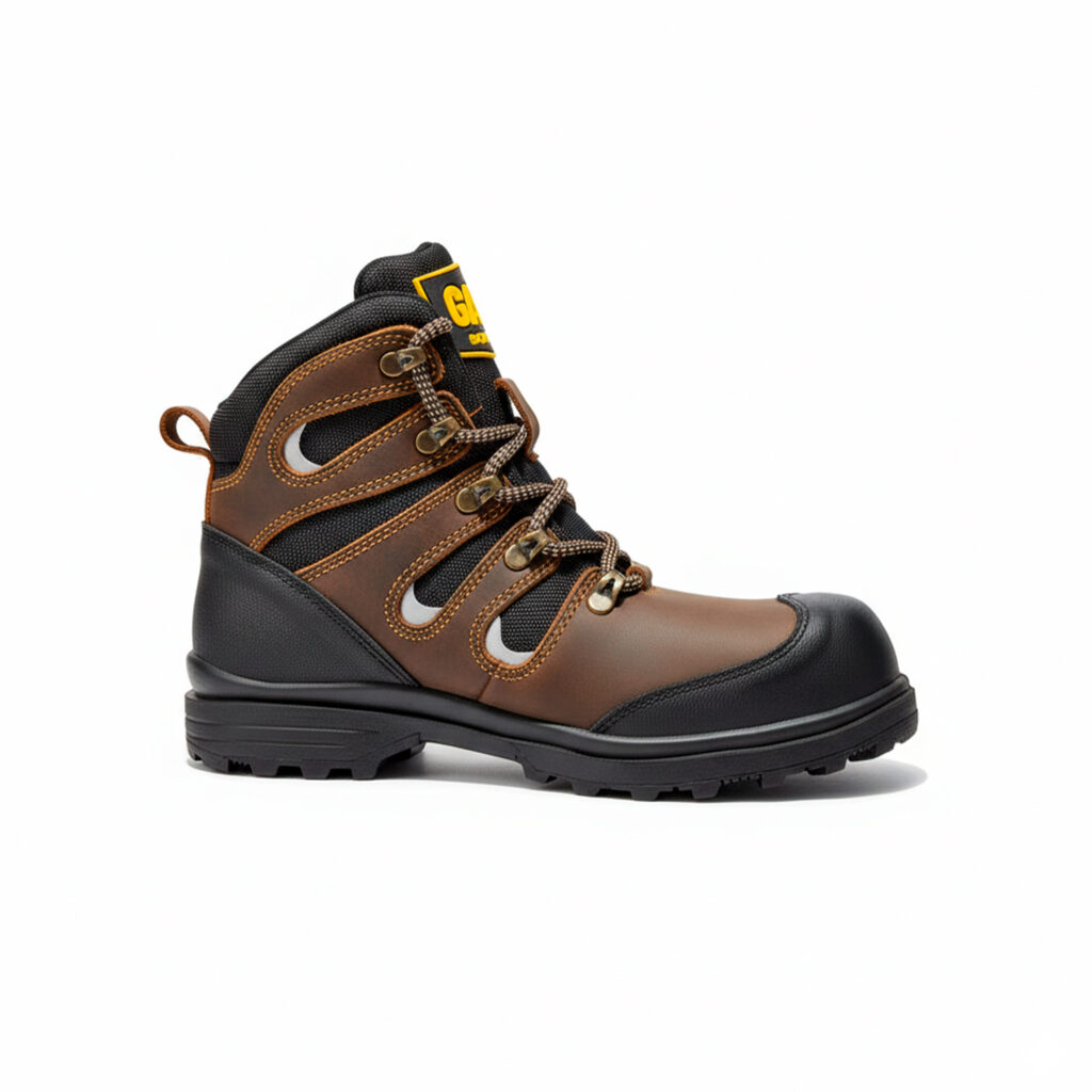 Corte: Piel napa lisa Color: Moka gris Suela: PU/Hule acrilonitrilo Puntera policarbonato Talla: 22 a la 30